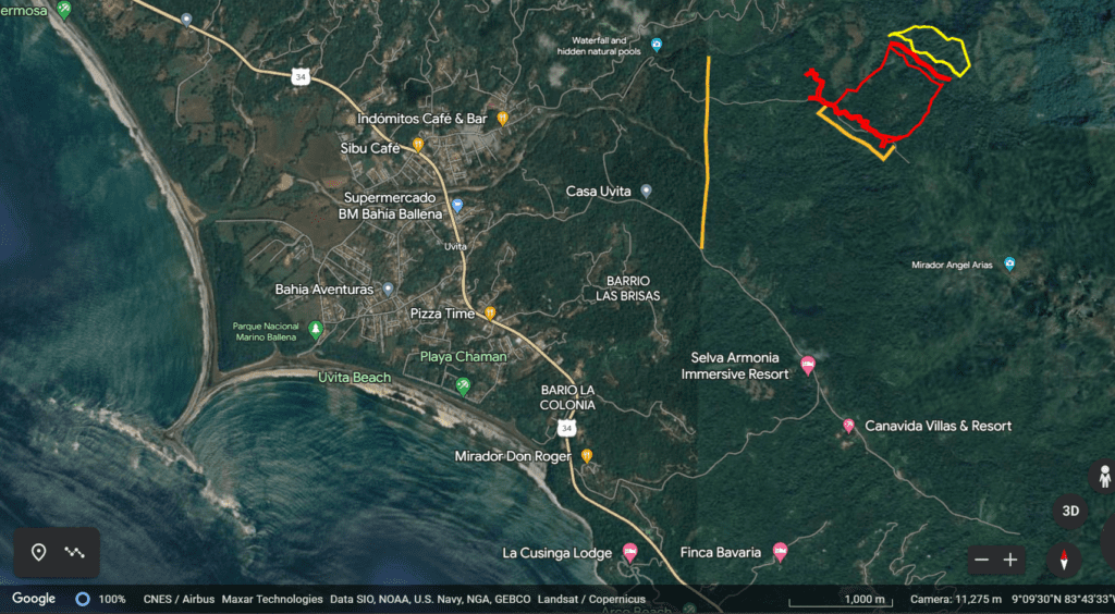 The part of the property, about 15 acres, with some of the best views available of the Whale’s Tail, likely the first or second most famous landform in Costa Rica, is a natural setup for some lodging and offering limited tours of the rest of the property.